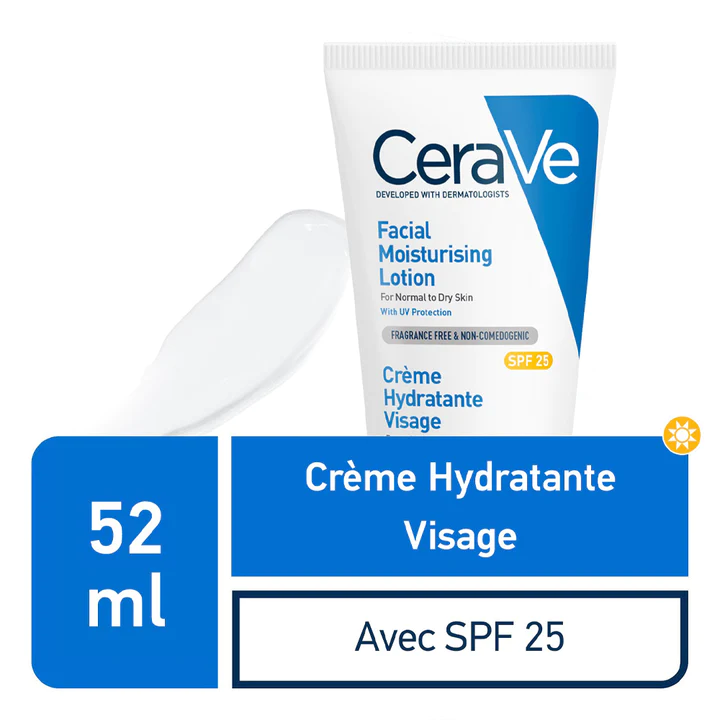 Développée avec des dermatologues, la crème hydratante visage SPF25 CeraVe hydrate au quotidien et offre une barrière UV tout en aidant à préserver la barrière protectrice de la peau. Sa texture légère, non grasse procure une hydratation tout au long de la journée, et dès la première utilisation.